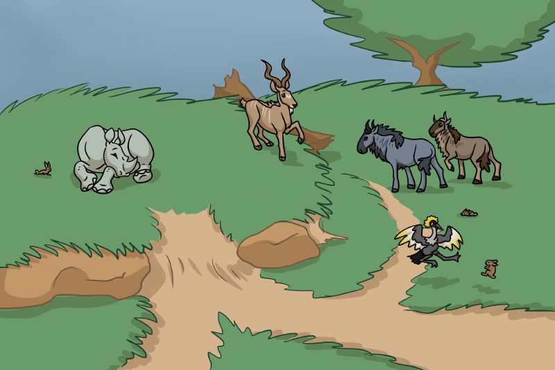 The cottontails have taken over! It's not terrible, though they're prone to startling the high strung antelope and their burrows pose a tripping hazard that can be dangerous for delicate-legged hoofstock.